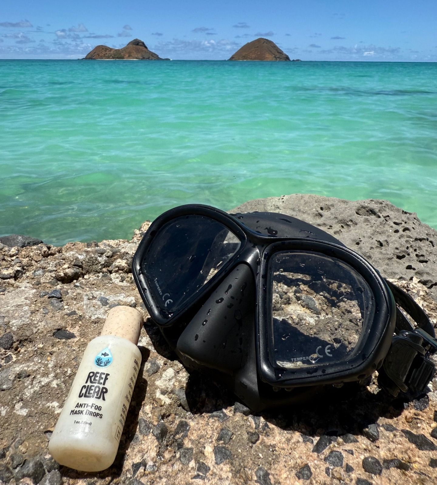 ReefClear is an eco-friendly anti-fog solution designed to keep dive and snorkel masks crystal clear without harming the ocean. Each 30 mL bottle provides roughly 100 uses of a plant-based formula, which uses just a few drops per lens to keep your view fog-free. The formula combines plant-based surfactants, natural preservatives, and biodegradable ingredients that vanish after use, leaving no trace behind. Every bottle comes in a plant-based, wheat-straw container that’s tough enough for your gear bag but designed to break down safely at the end of its life. Each is paired with a recyclable cardboard cylinder and compostable wrap, so the packaging disappears responsibly while your impact remains.